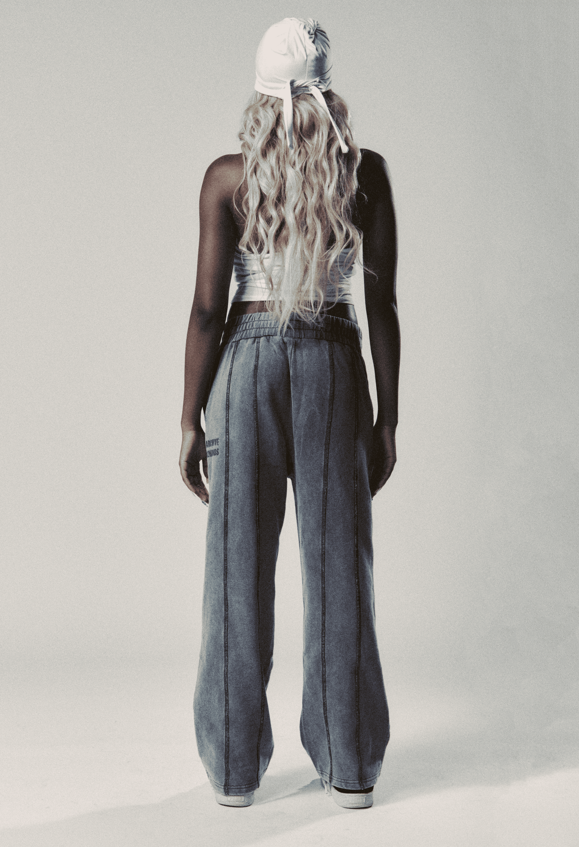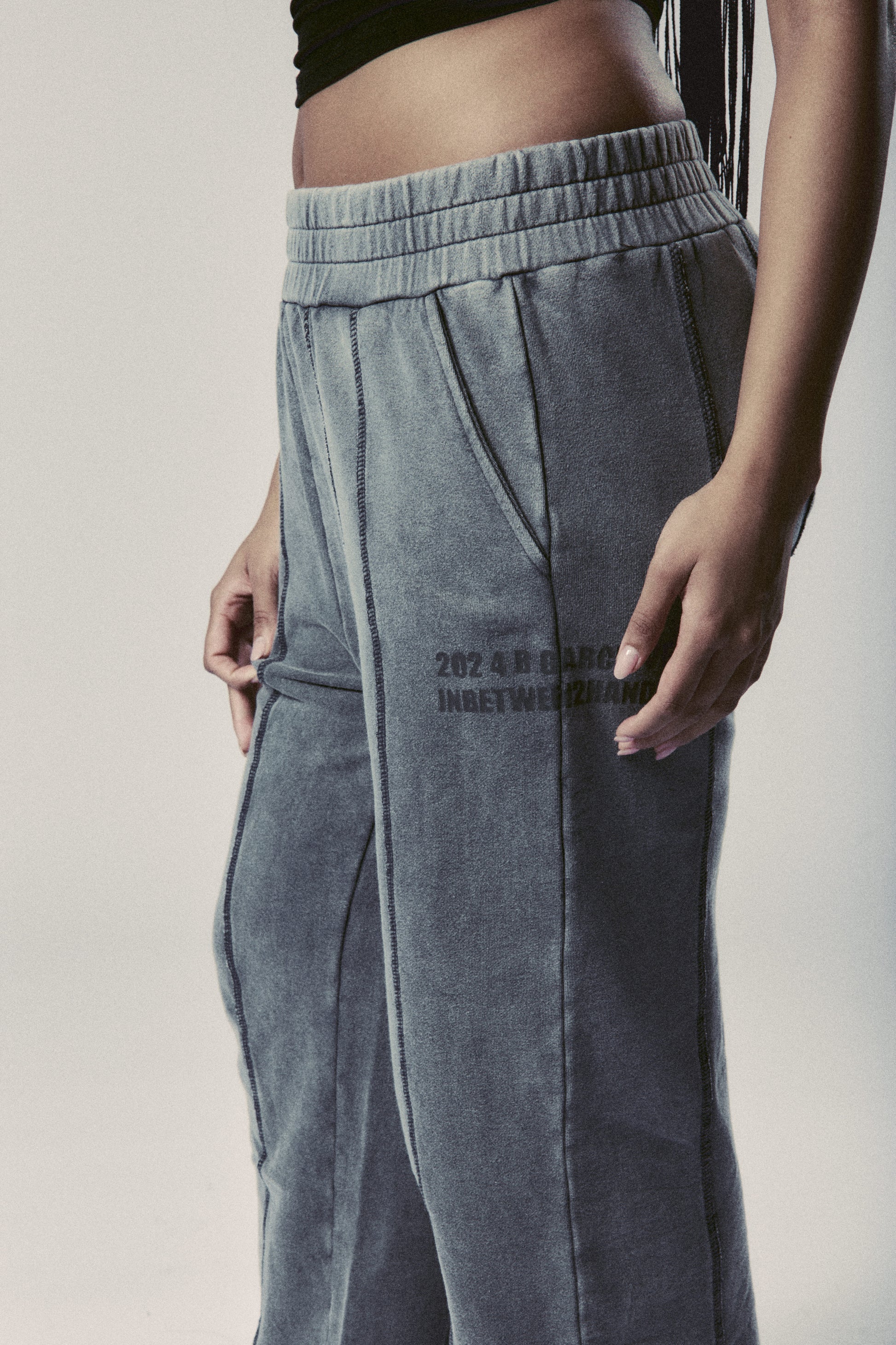 Grey acid washed Sweatpants with digital printing and inside out stitching details
